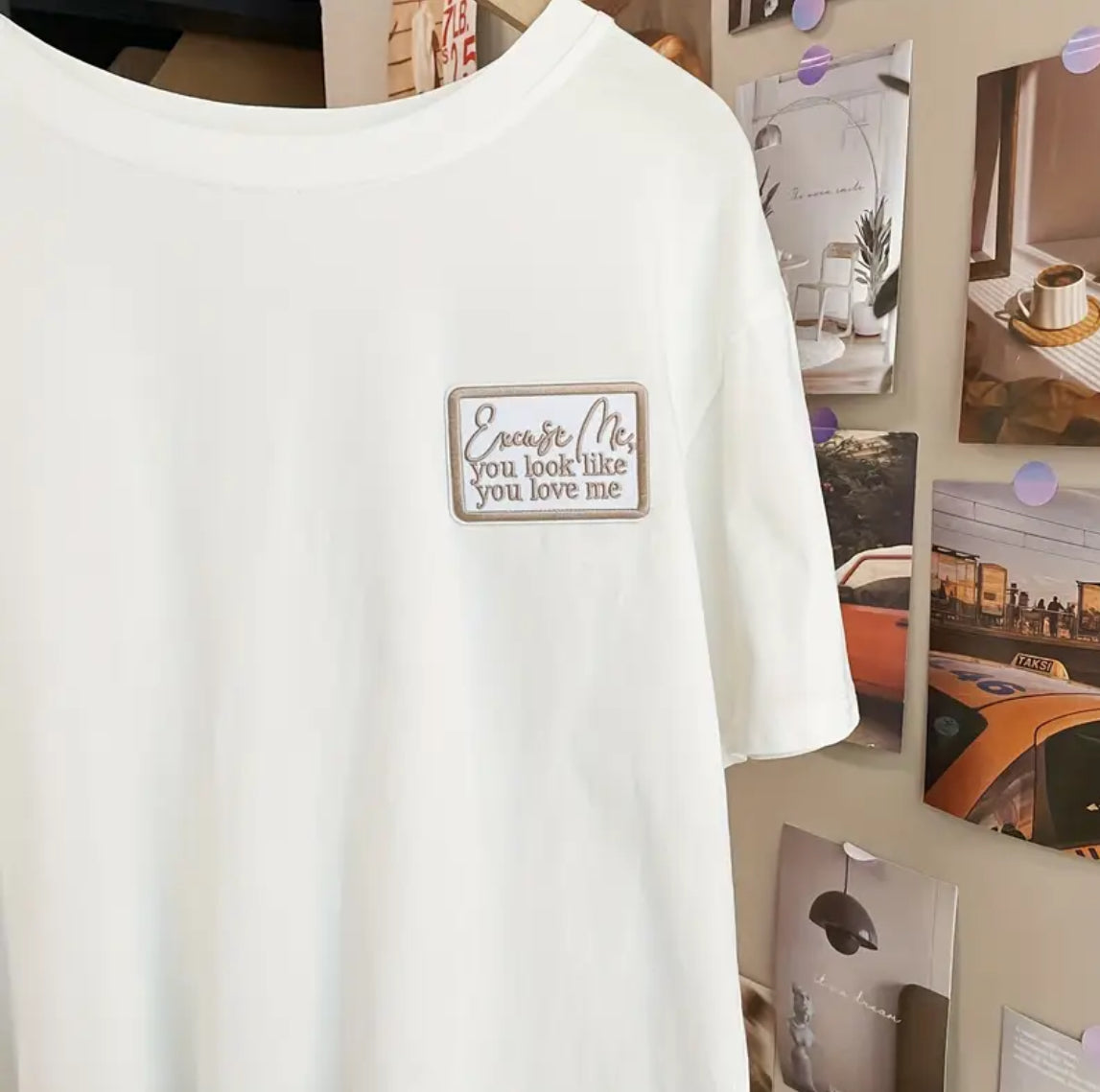 Need a subtle way to let them know you’re the main character? This “Excuse Me, You Look Like You Love Me” embroidered patch says it all—without saying a word. Whether you're channeling your inner romantic, soft girl vibes, or just like to make people look twice, this patch is here for your moment.